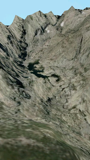 Ordesa 3D es el mismo escenario que el anterior pero con una textura basada en Ortofotos copiadas y pegadas en un lienzo de 2048x2048 px. Fue un trabajo duro, cansado para la vista, pero creo que me quedó bastante bien, el único problema fue que dicha textura en formato png ocupaba una barbaridad (más de 10 MB) así que la comprimí y la guardé en otro formato que llevaba menos ruido y datos que para lo que se necesita en la aplicación son inútiles. Ésta optimización vino por un comentario que me hizo un usuario de la aplicación ya que siempre dejo mi correo "profesional" a disposición de mis potenciales usuarios (d.jgc.it@gmail.com). Él me dijo que en su dispositivo la aplicación no funcionaba debido a un desbordamiento de la memoria. Ésto me llevo a desarrollar Ordesa 3D Little (mismo escenario pero mucha menos resolución en cuanto a alturas y en cuanto a texturas pero parecida definición en tiempo de ejecución) y a encontrar la manera en la que después he ido reduciendo el paso de las distintas texturas de "mis montañas 3D". Ordesa 3D y 3D Little se ven así: