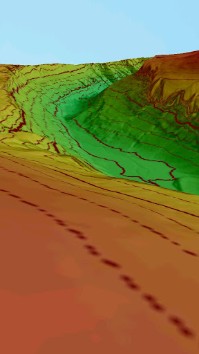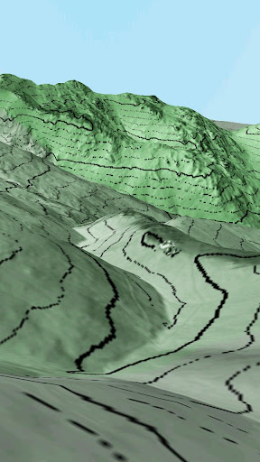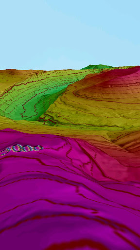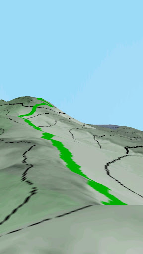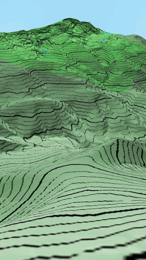 Ya he hablado antes de ésta aplicación y he dicho que era la que tenía la mejor textura (virtual o tipo mapa) de todas. Es un mapa virtual en 3D con curvas de nivel cada 20 metros alrededor del Pico Peñalara. Me gusta mucho como me quedó la textura y la manera en la que la hice y será como haga a partir de ahora todas las aplicaciones que pretendan ser un mapa topográfico en 3D, es decir, en un solo color, verdoso, con sombras y curvas de nivel cada 20 metros. En esta App aparecen marcadas varias zonas, en dos tonos más oscuros de verde, primero el parque de Peñalara y segundo las zonas de especial protección medioambiental del mismo; en tono azulado aparece la parte de la estación de esquí de Valdesquí que queda dentro del mapa. ¿Que os parecen éstas imágenes?